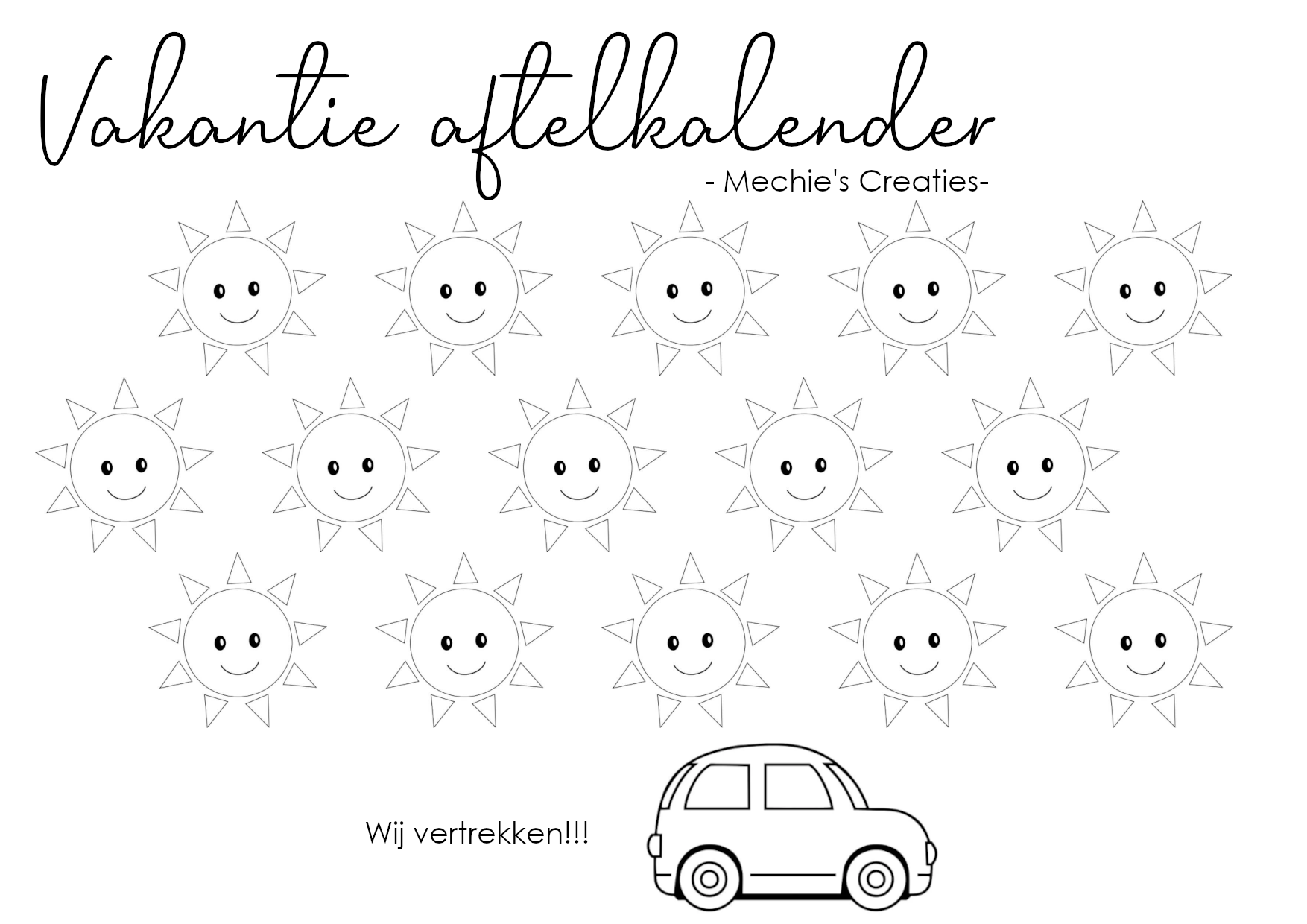 Elke dag mogen ze hier een zonnetje inkleuren, en van zodra alle zonnetjes gekleurd zijn, vertrekken we!