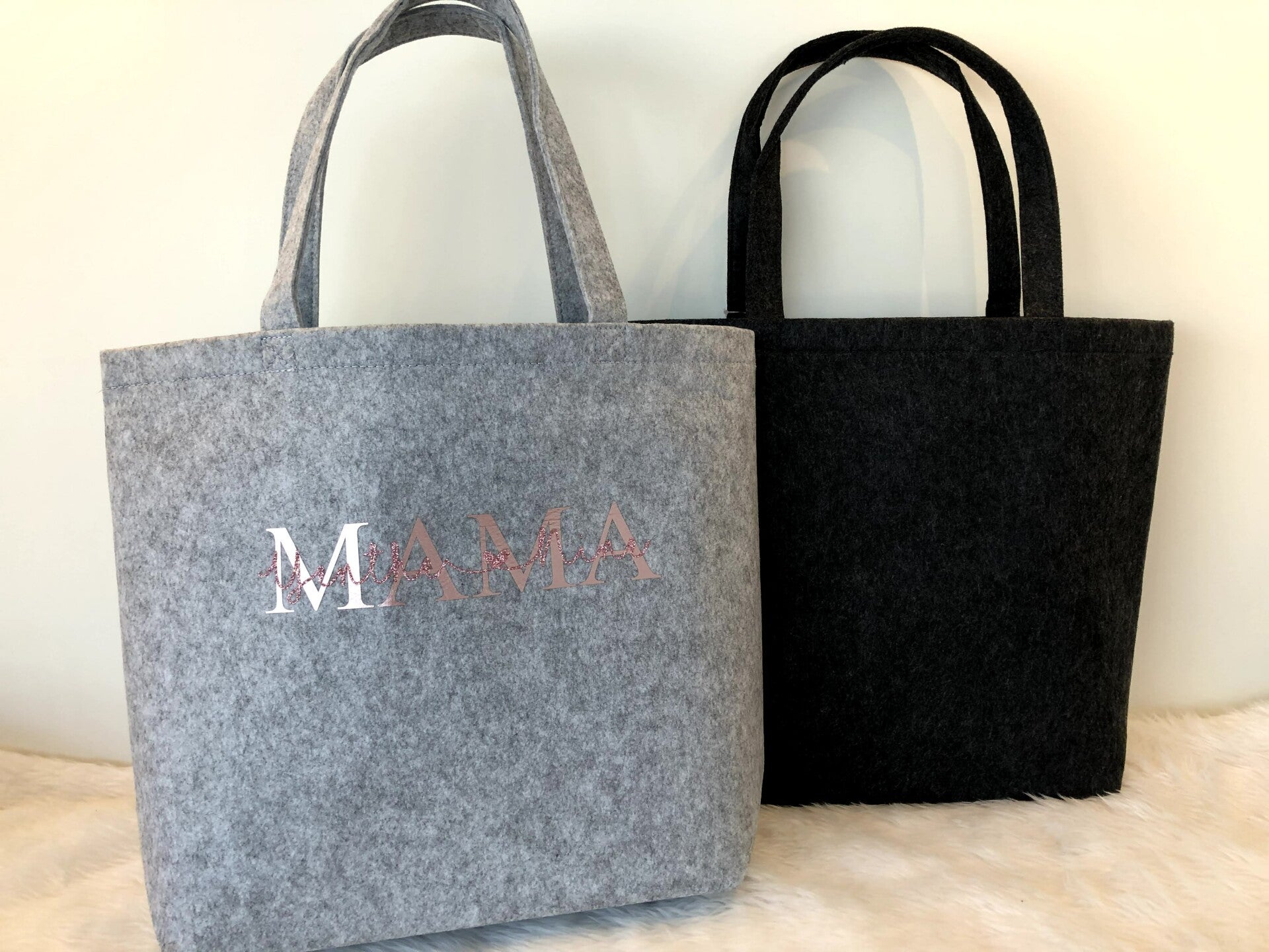 Deze luxe shopper is uit 100% polyester vilt, en verkrijgbaar in 2 kleuren (licht grijs of donker grijs).
