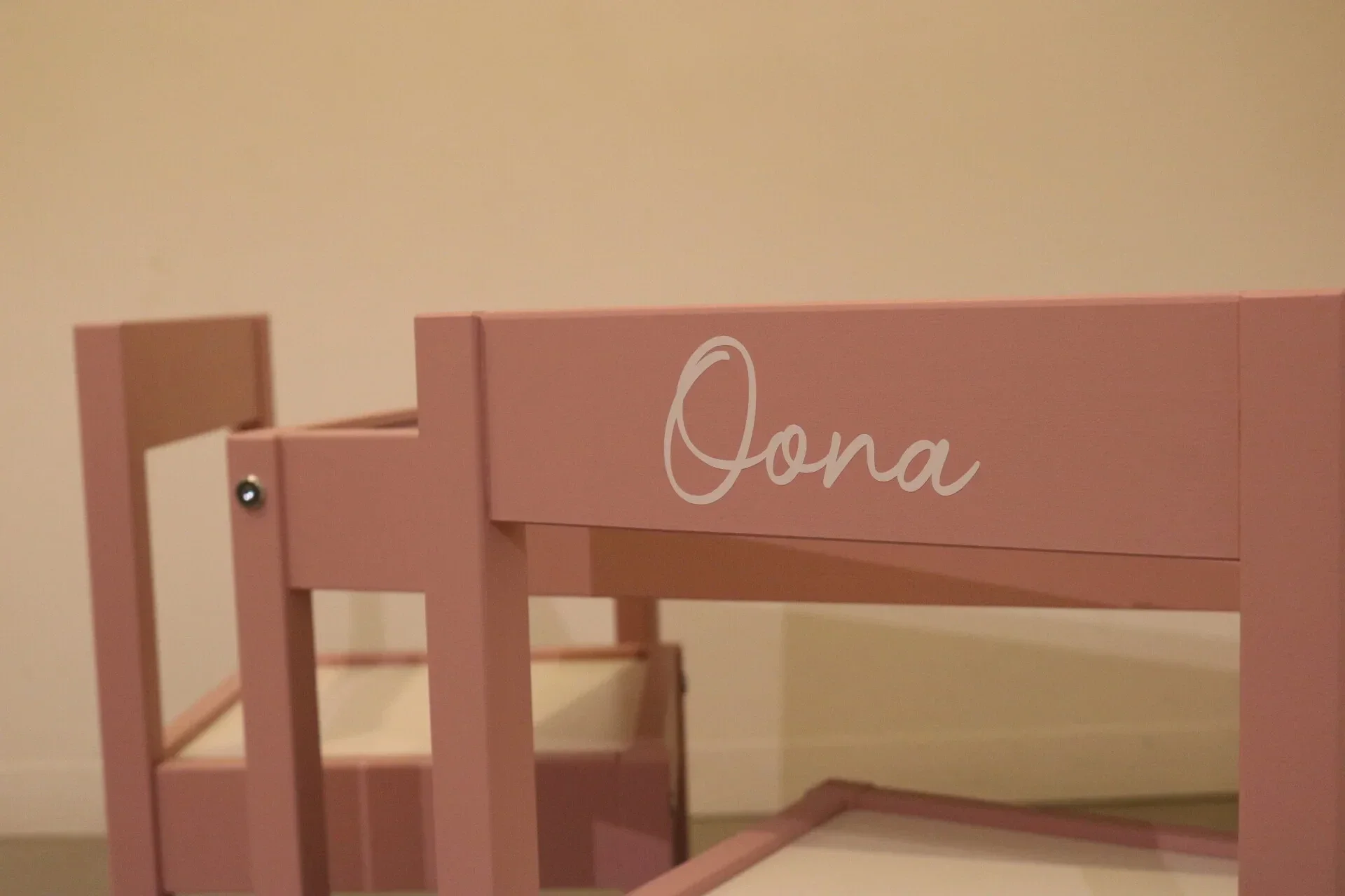 - En om af te sluiten, nog enkele extra's? Zoals bijvoorbeeld 1 of 2 namen op de achterkant van het stoeltje?